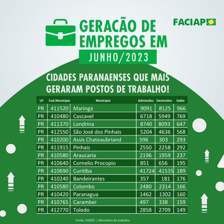 Paraná tem melhor saldo de empregos da região Sul