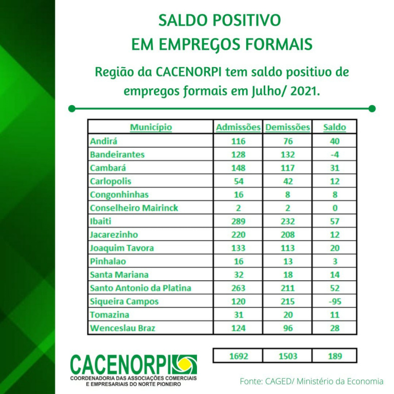 Resultado do CAGED de Julho de 2021, traz novamente números